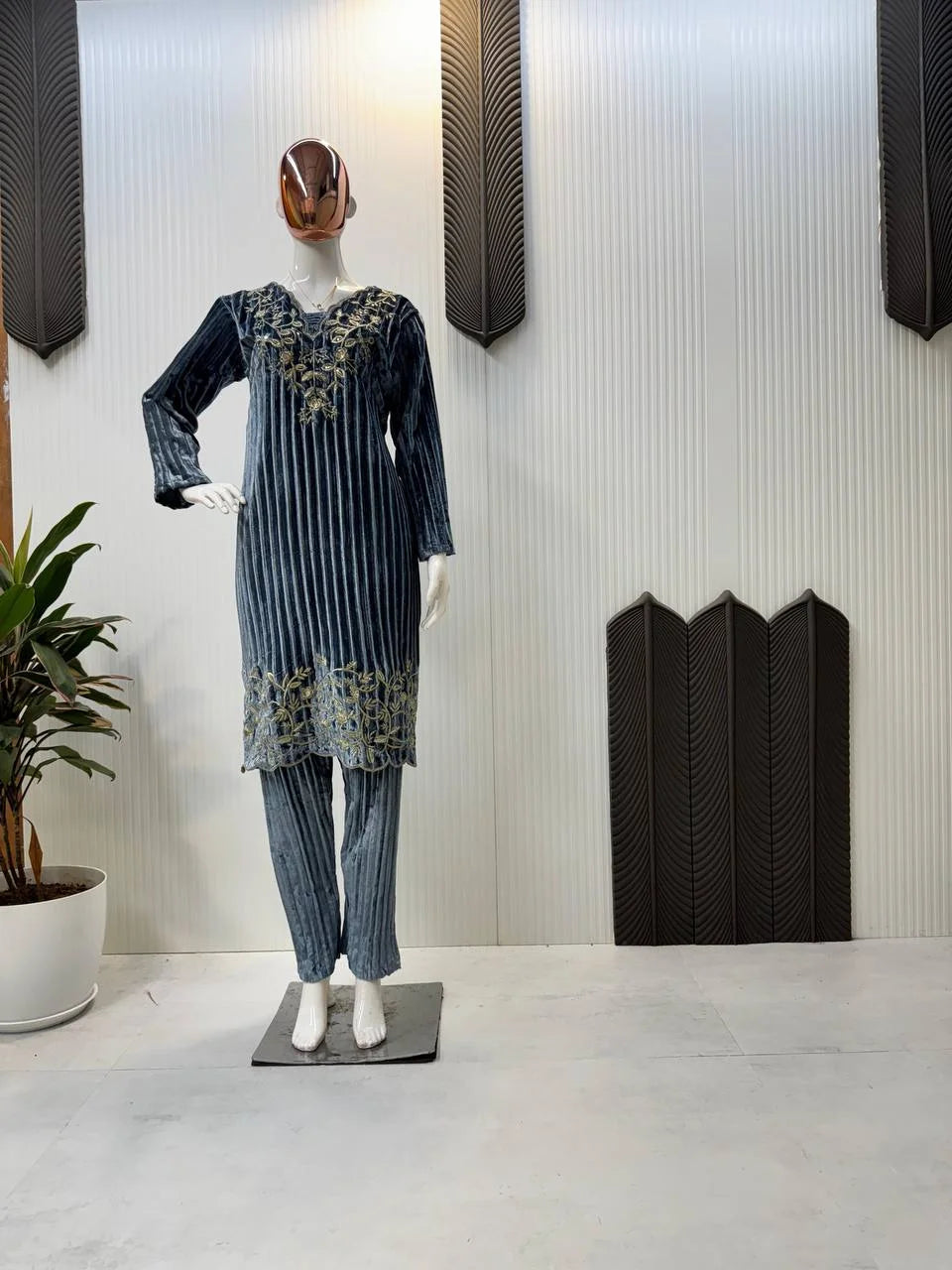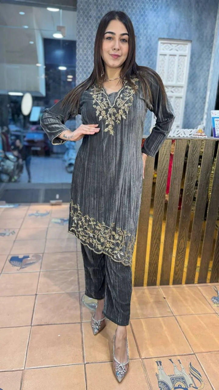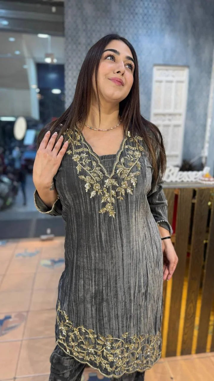 THIS WINTER SEASON OUR NEW DESIGNER BLOOMING VELVET EMBROIDERY WORK SUIT WITH PANT