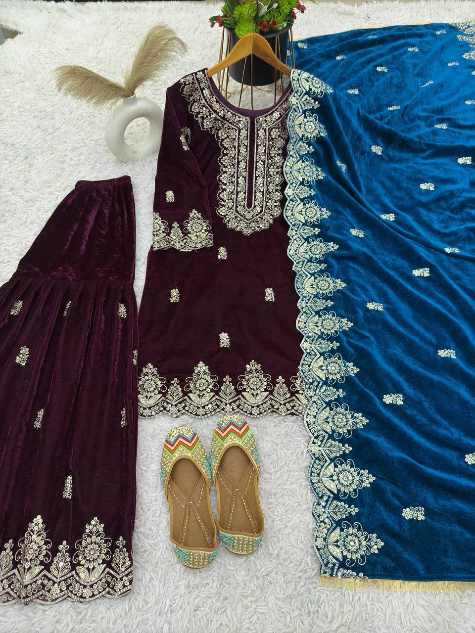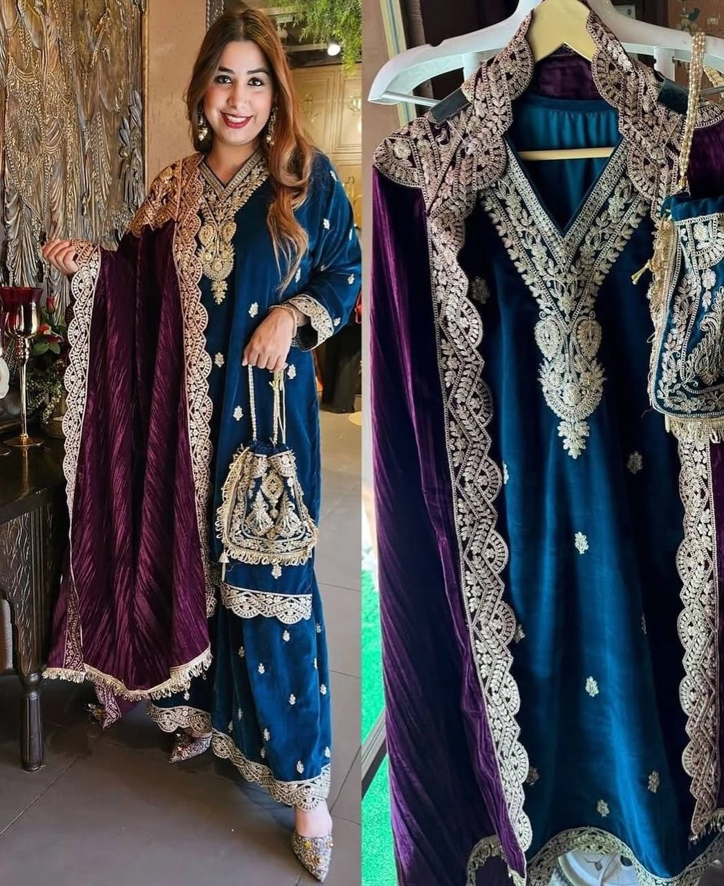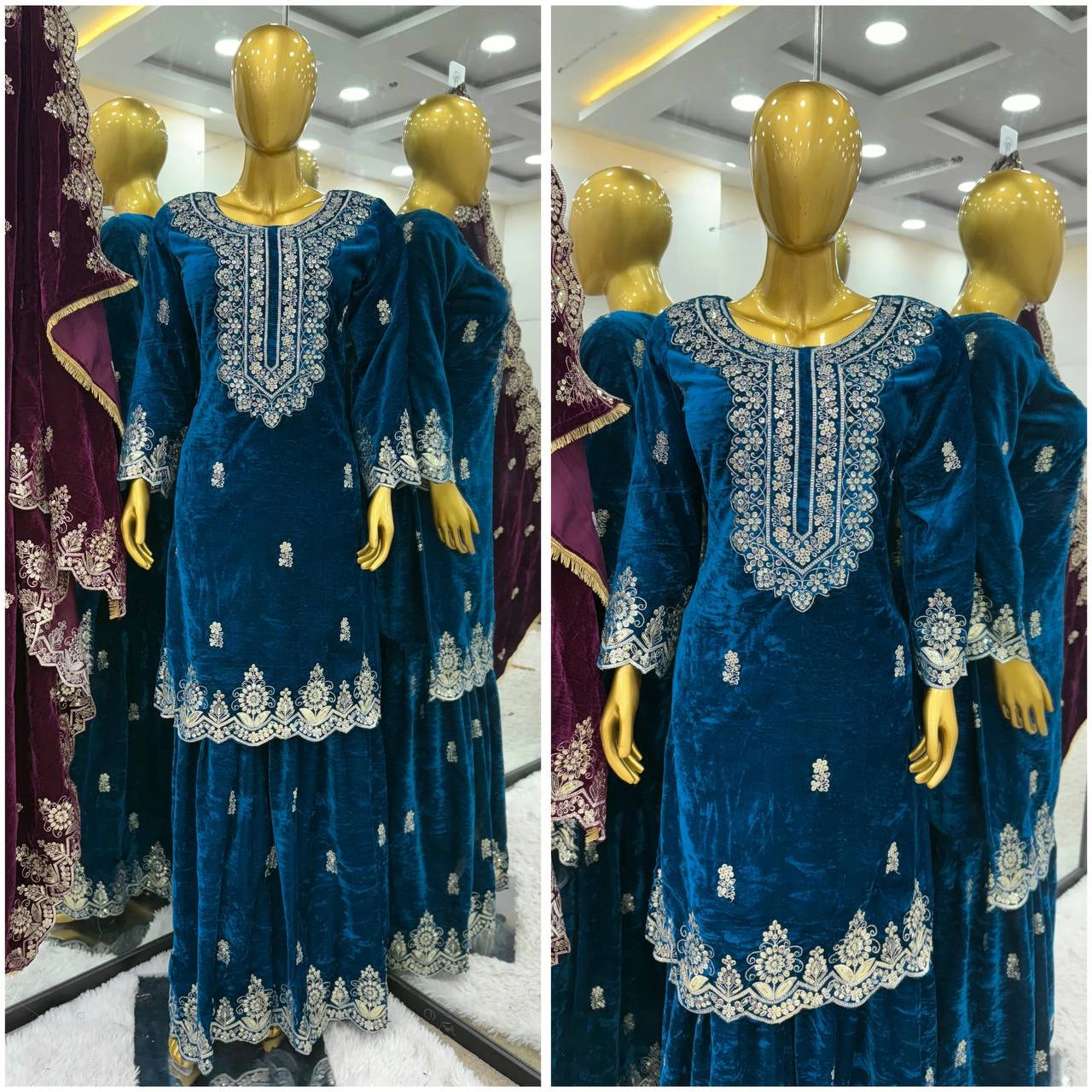 - Dupatta Fabric : Viscose Velvet with Embroidery Sequence lace borDER